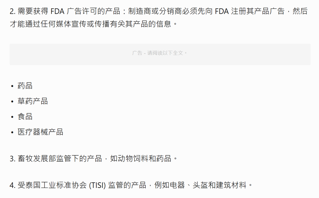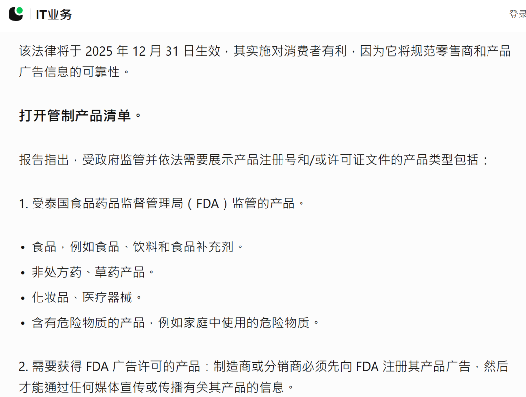 要求必须在商品页面显著位置,亮出泰国食品药品监督管理局(FDA)或泰国工业标准协会(TISI)颁发的许可证号或注册证书。哪怕是需要打广告的药品、食品,也得先拿到 FDA 的广告许可才能宣传。