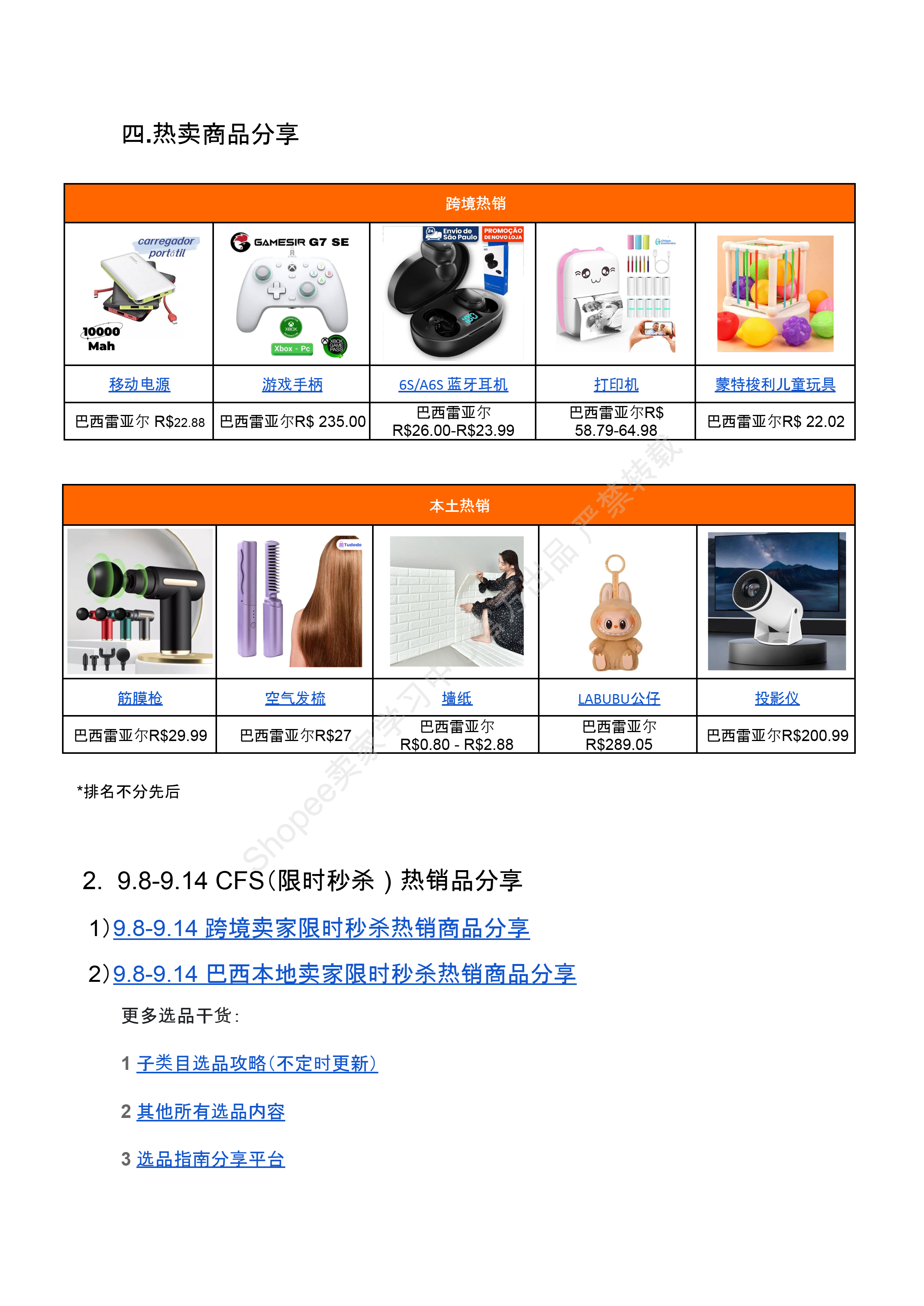 【Shopee市场周报】虾皮巴西站2025年9月第4周市场周报