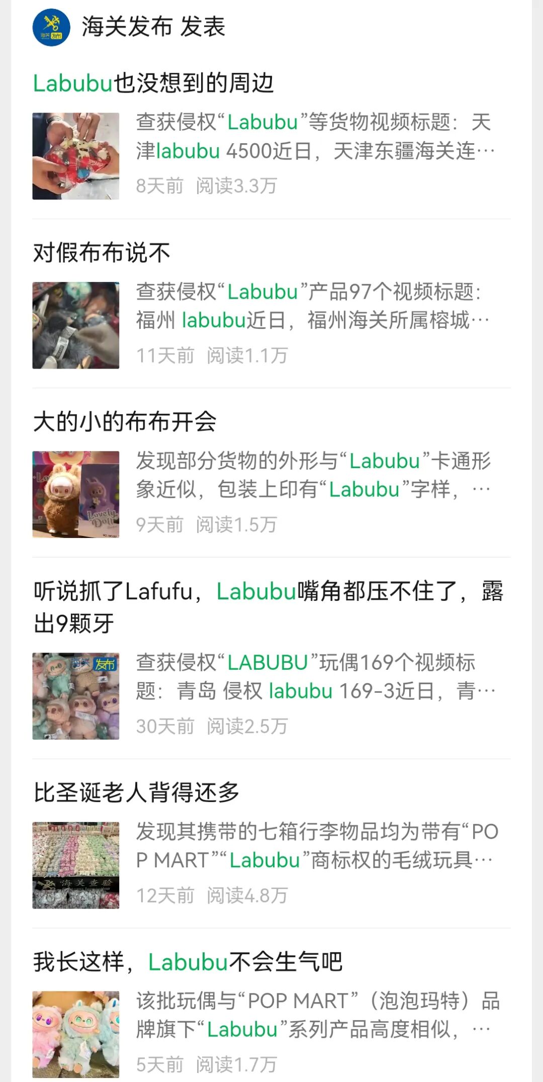然而,忙碌的不仅是供应链端上的卖家,由于泡泡玛特早已向中国海关申请知识产权保护,各大口岸的海关人员也加紧了对进出口货物的排查力度,从流通环节全力拦截涉嫌侵权的 Labubu 产品。