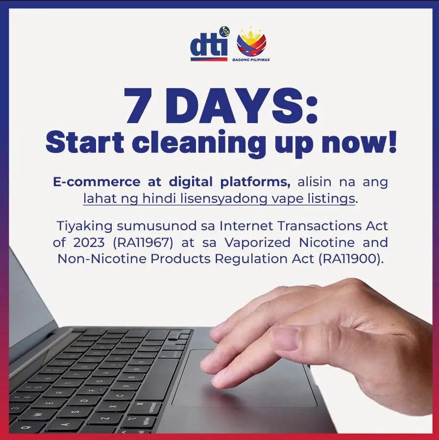 基于上述法规及案件中暴露的违规问题,8月15日,菲律宾贸工部责令Shopee、 TikTok Shop等电商平台需要在收到该部下架令的 7 天时限内,立即删除相关非法电子烟的商品链接。
