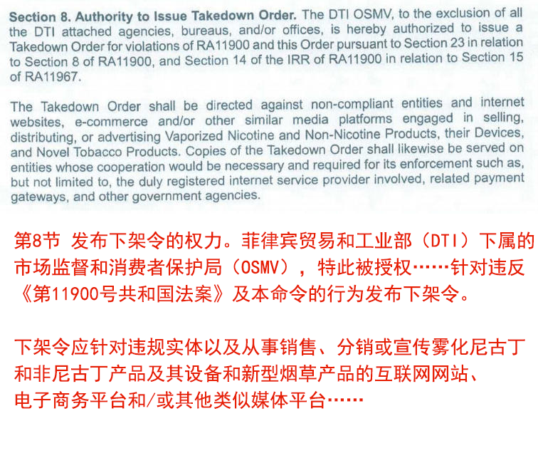 同时,该法令第八节明确,若违反上述规定,DTI有权要求电子商务平台在发现电子烟违规行为后,立即下架相关产品。