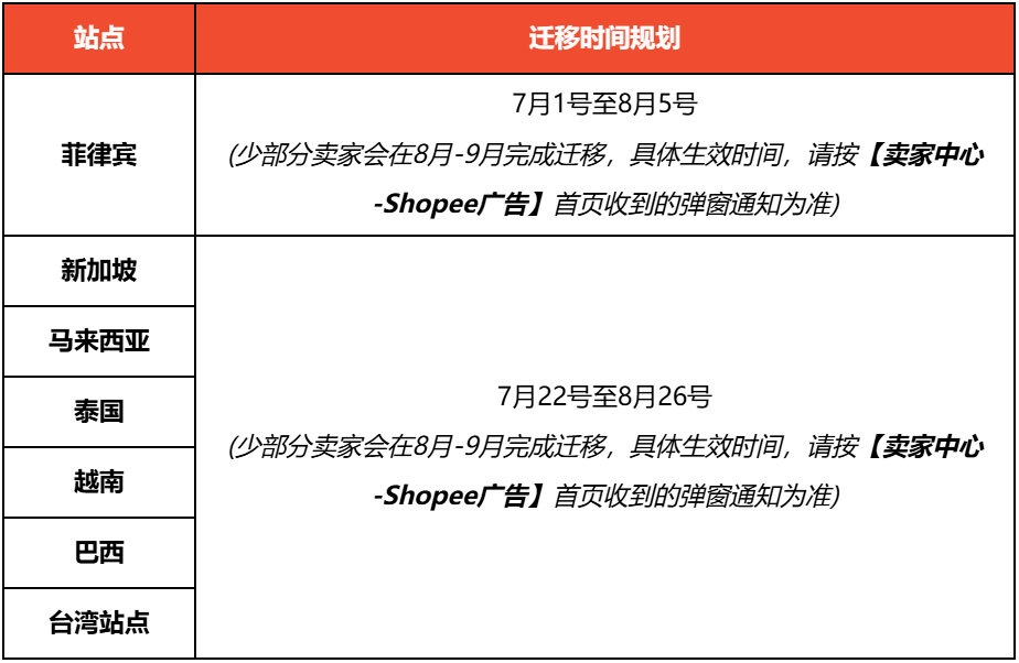 卖家需以【卖家中心 - Shopee 广告】首页弹窗为准,迁移期间手动广告将自动暂停,所有数据与预算整合至全站推广系统。