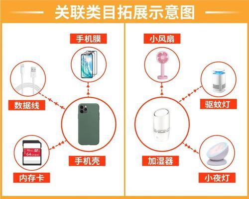 举一个很简单的例子,比如下图,在原店铺销售手机壳的基础上,可以进一步拓展如手机膜,数据线,内存卡等周边;如果原先的主要产品是加湿器,那么可以尝试小风扇,驱蚊灯,小夜灯等小家电产品。