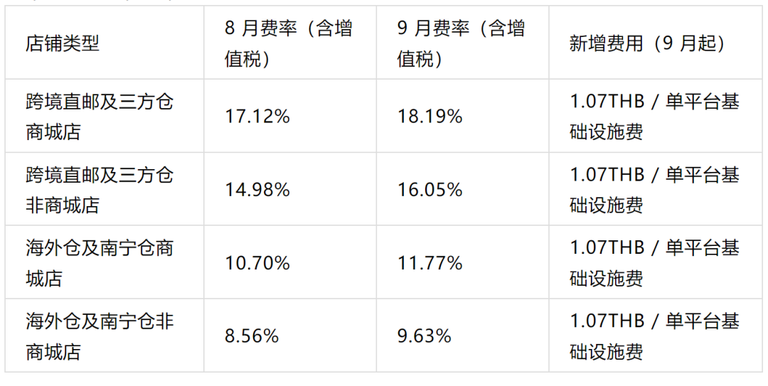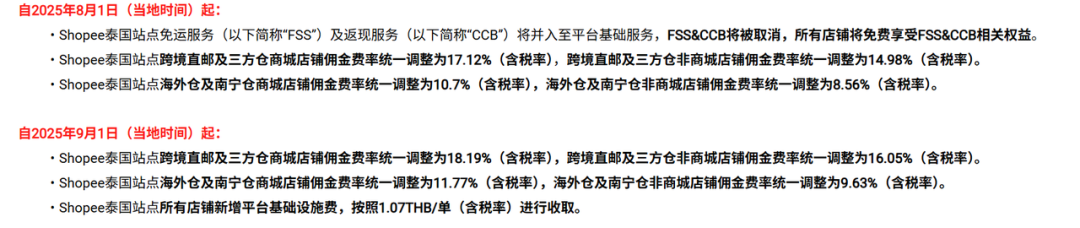 泰国跨境店的费用调整聚焦于佣金结构优化与服务整合。