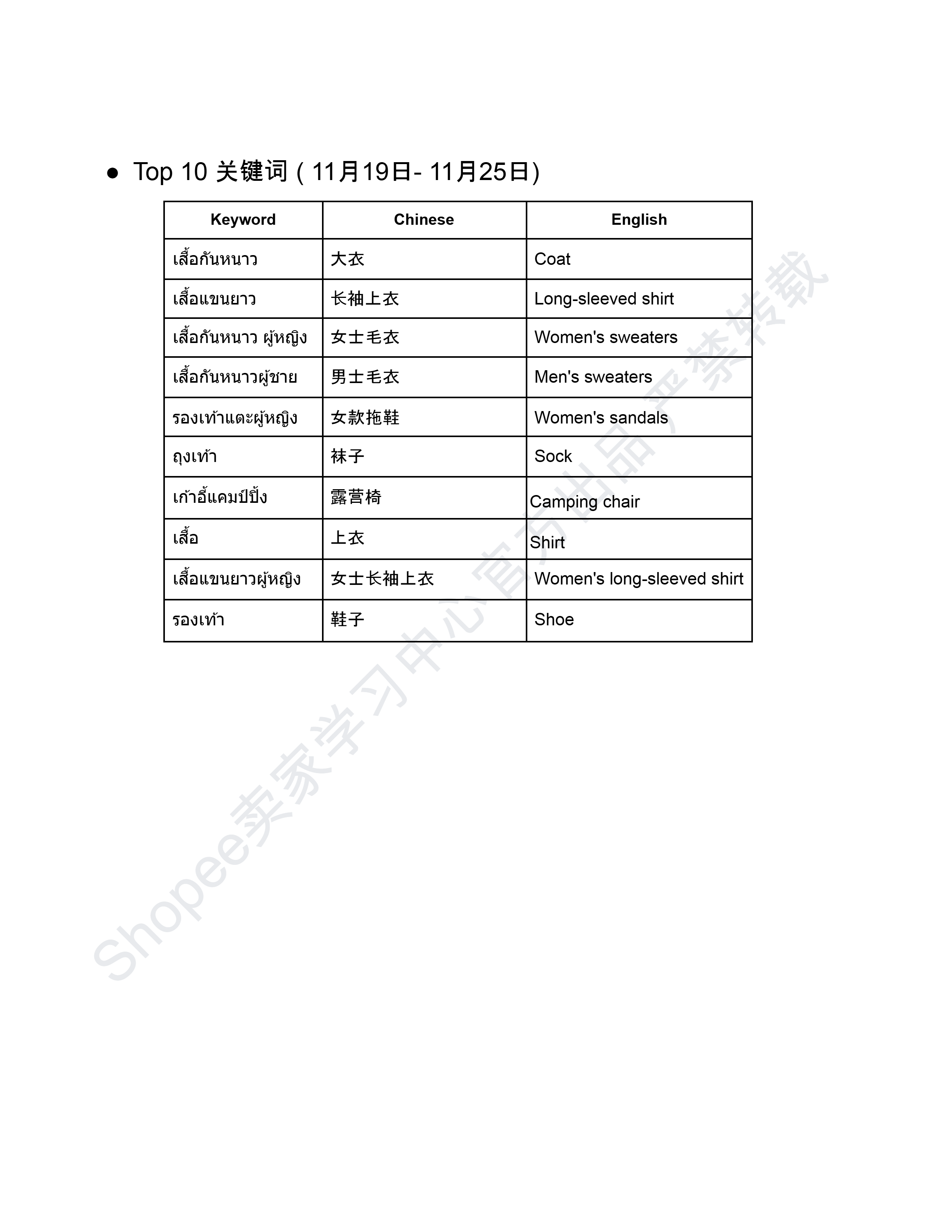 【Shopee市场周报】虾皮泰国站2025年12月第1周市场周报