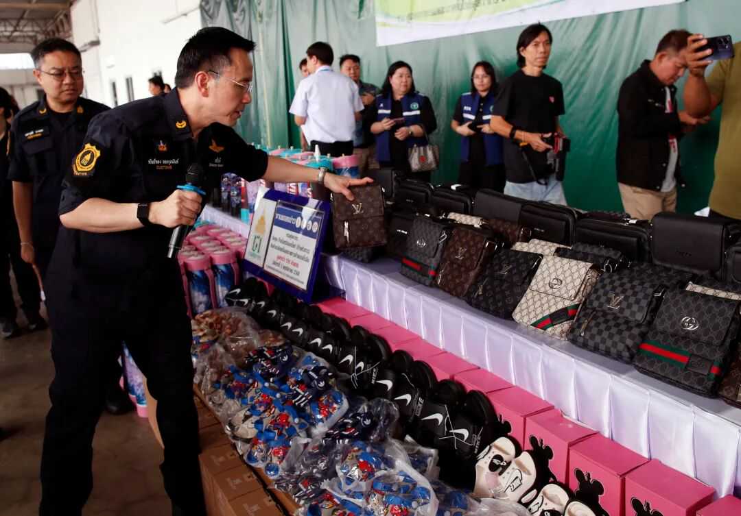 本月初,泰国海关在一批来自中国的走私集装箱中,成功查获 18175 件侵犯知识产权的商品,涵盖假冒奢侈时尚单品、盗版鞋履、水杯及移动电源等品类,涉案总价值高达 1.59 亿泰铢。而就在此次查获行动之前,该部集中销毁了此前在泰国各地海关口岸拦截的侵权商品,总价值约 6000 万泰铢。
