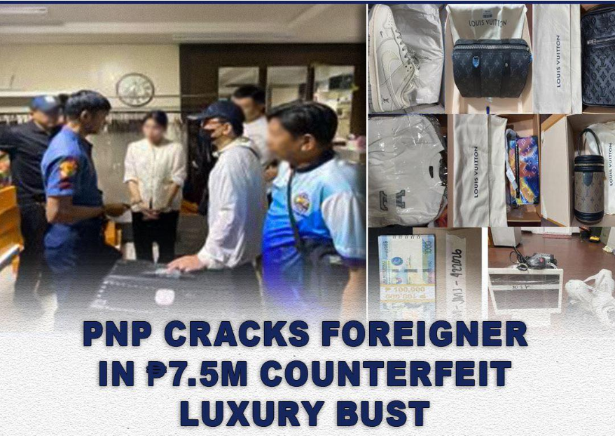 警方在现场查获了约750万菲律宾比索的假冒奢侈品,其中包括多箱高端箱包、鞋履及各类品牌仿品,同时扣押了用于运营的电子设备。