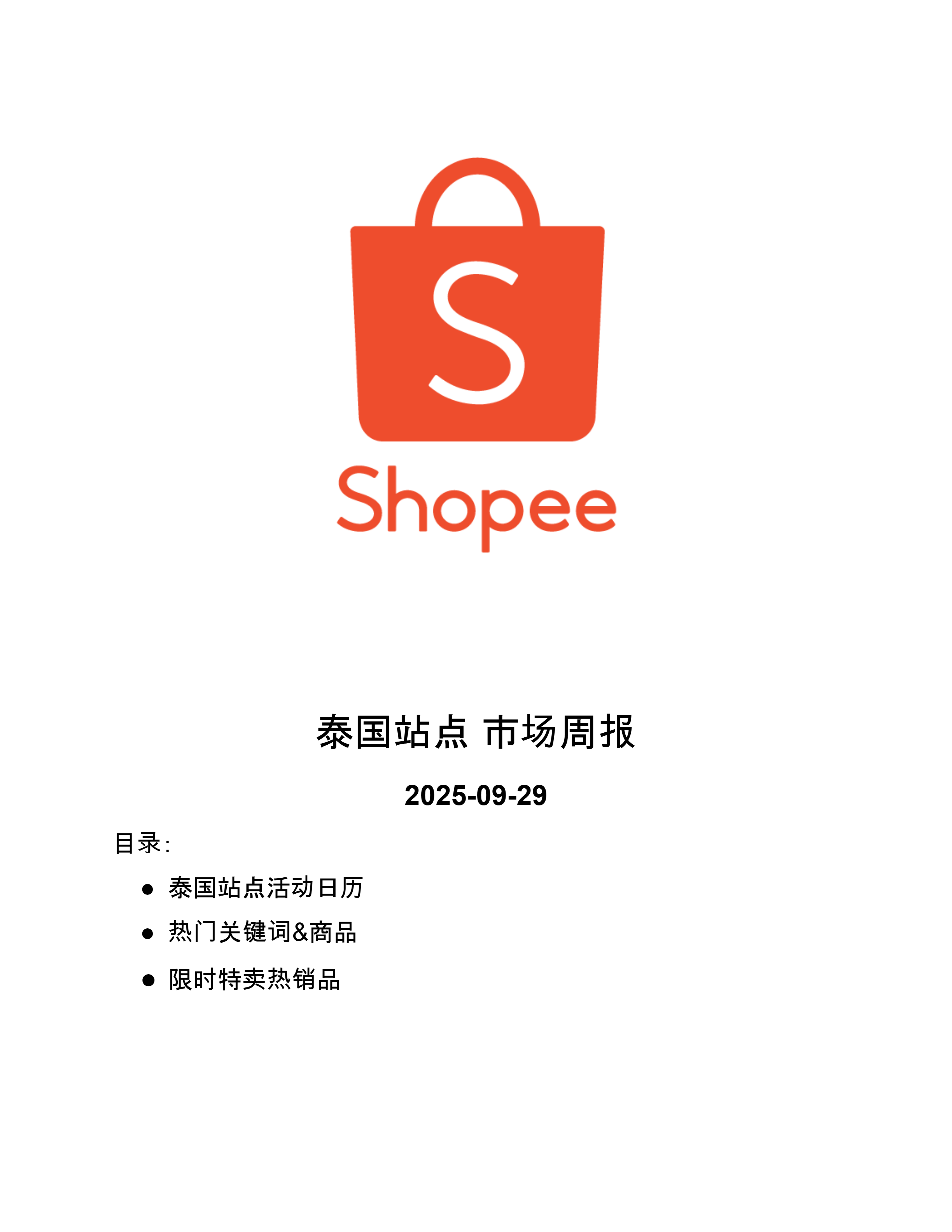 【Shopee市场周报】虾皮泰国站2025年10月第1周市场周报