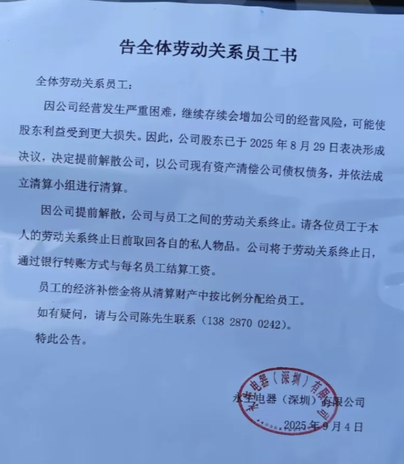 9月4日,永生电器贴出一纸公告,宣告这家扎根跨境圈 13 年的电器代工厂正式关停。