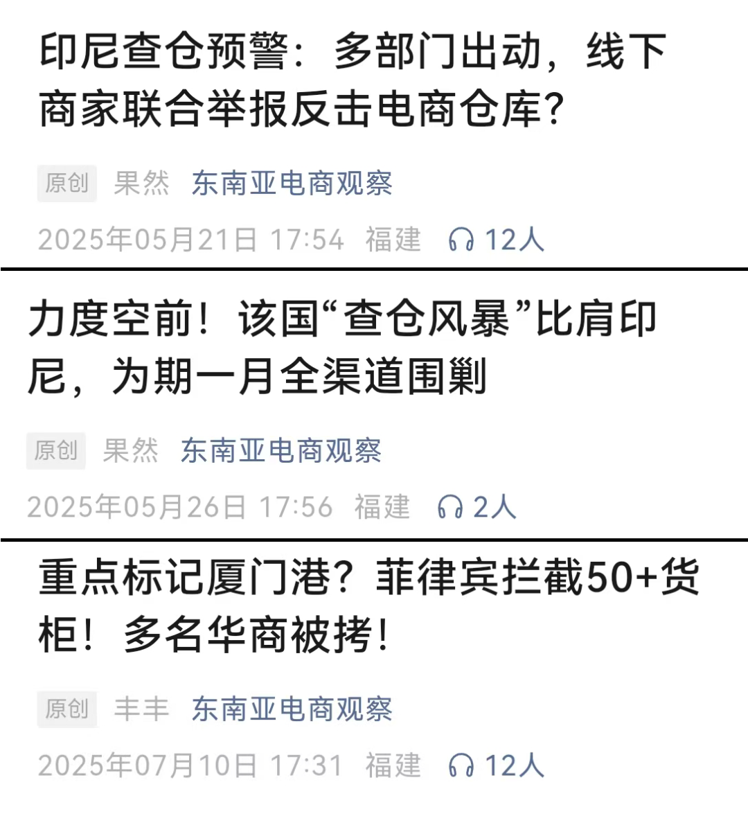 尤其在东南亚,近年来针对电商仓库的查仓、封仓行动愈发猛烈,今年的频次与力度就在不断升级:印尼在 “红灯期” 叠加海关署长换任,监管力度较往年更甚;菲律宾则联合多部门,针对电商货物的产品认证展开重点筛查;越南也发起全国性打击行动,多个售假电商仓库被波及。