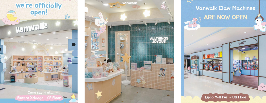 线上布局高歌猛进的同时,Vanwalk 也同步推进线下渠道建设。2024 年,品牌在广州开出首家实体门店,随后逐步点亮重庆、深圳等国内坐标;近期品牌更把线下战略延伸至东南亚,在印尼雅加达、万隆的热门商圈一口气开出 3 家主题门店,收获大量当地年轻消费者的关注与喜爱。