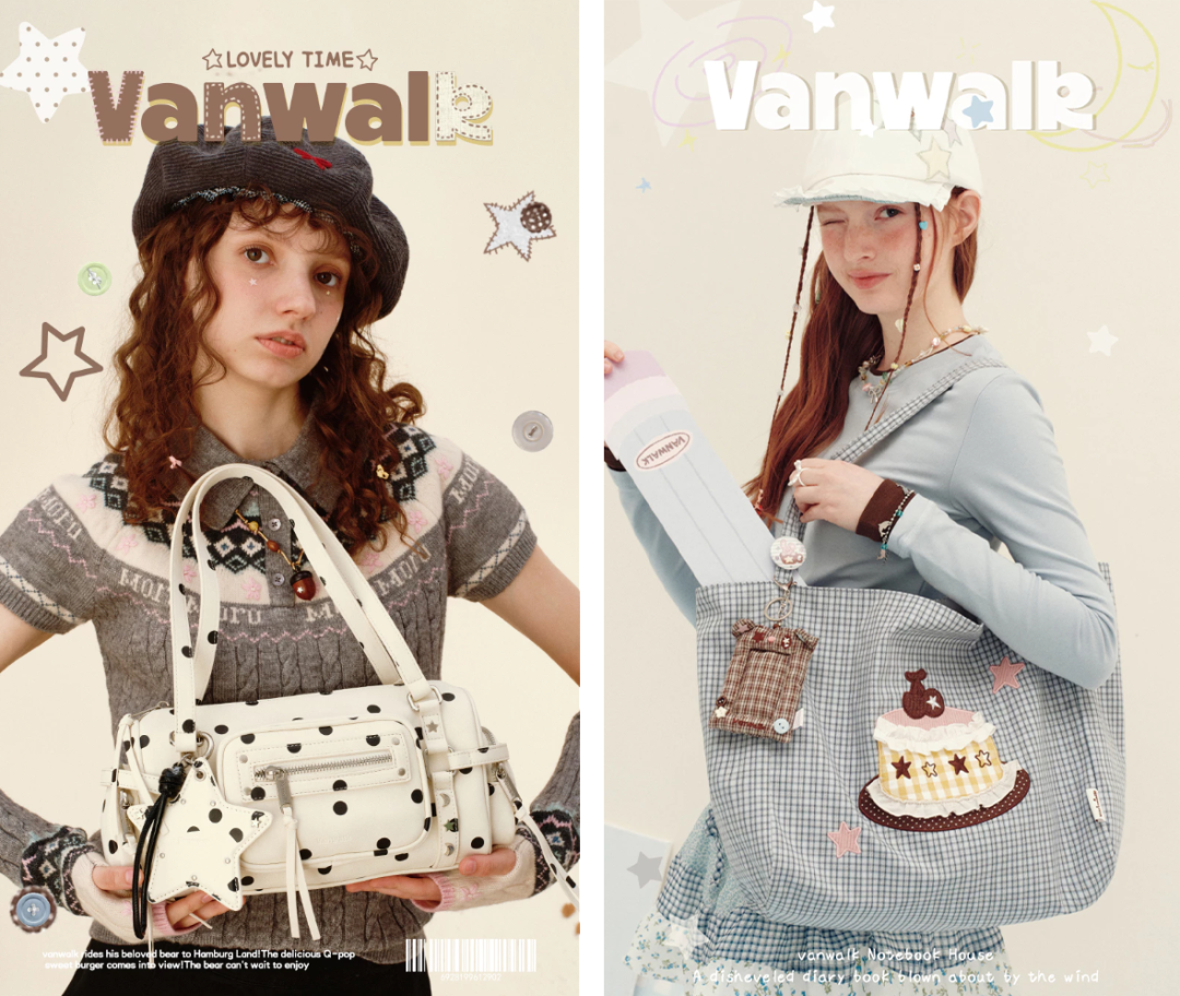 凭着辨识度拉满的少女感风格,加上对原创设计的坚持,Vanwalk很快在国内箱包市场打开知名度。