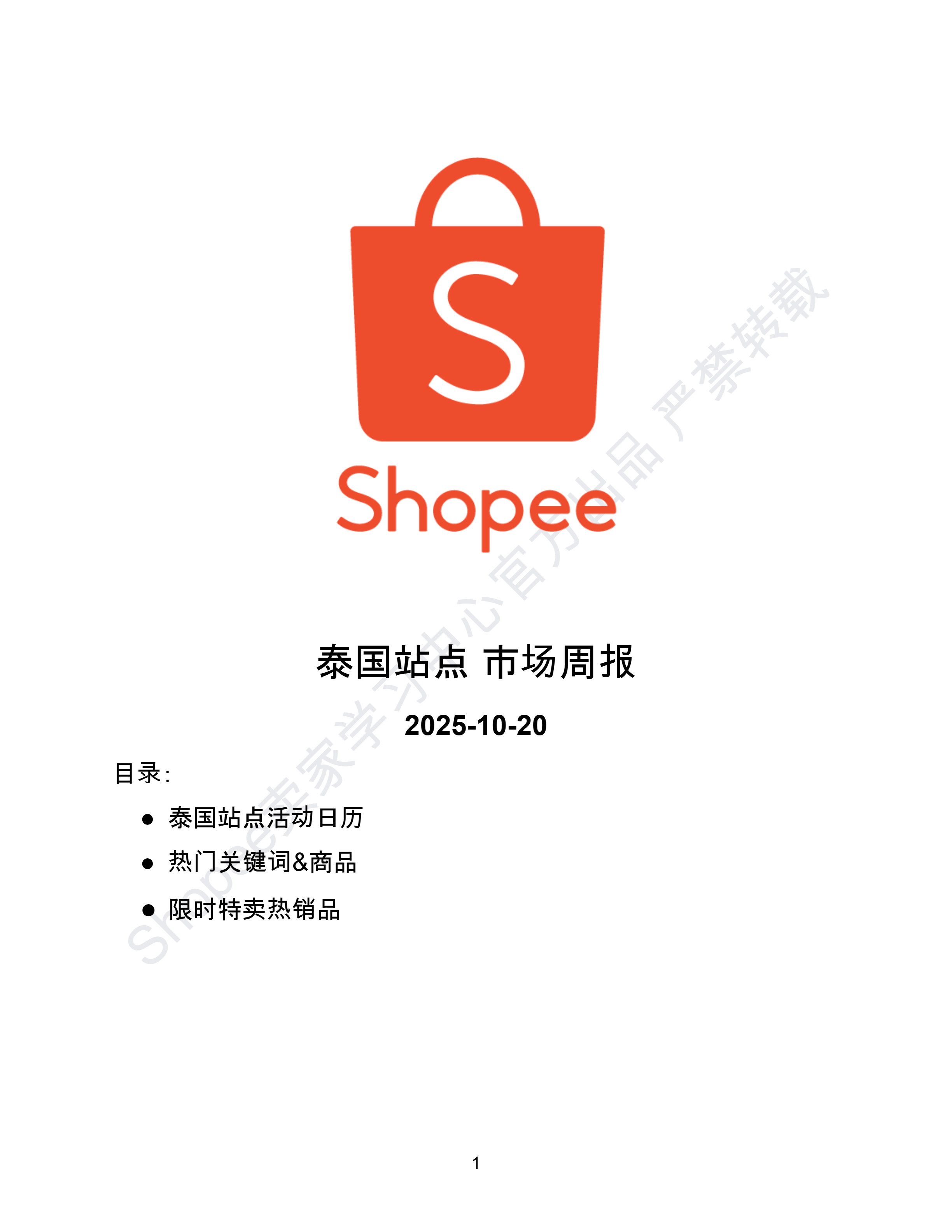 【Shopee市场周报】虾皮泰国站2025年10月第3周市场周报