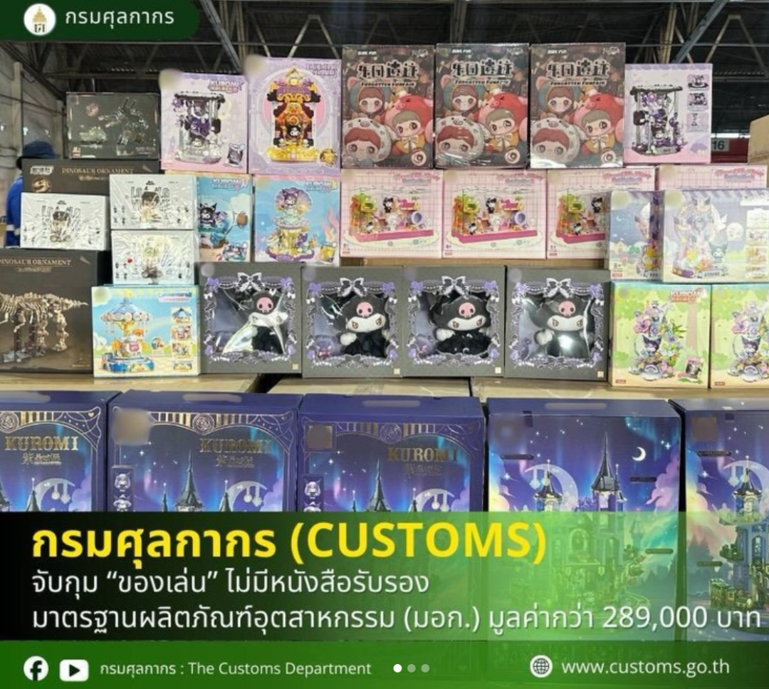 2月3日,泰国海关总署查缉处在林查班港对查获了6250多件未申报的电源插座,调查时进口商无法提供泰国工业标准协会 (TIS) 颁发的进口许可证。而相隔几天后,泰国拉卡邦海关又拦截了一批未获得TISI认证的中国进口玩具,价值超550万泰铢,总重6,354公斤。