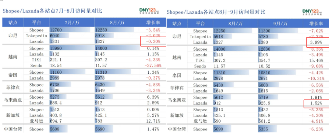 SimilarWeb 数据显示,9 月东南亚货架电商总访问量环比下降 5.5%,两大核心平台均未能幸免: