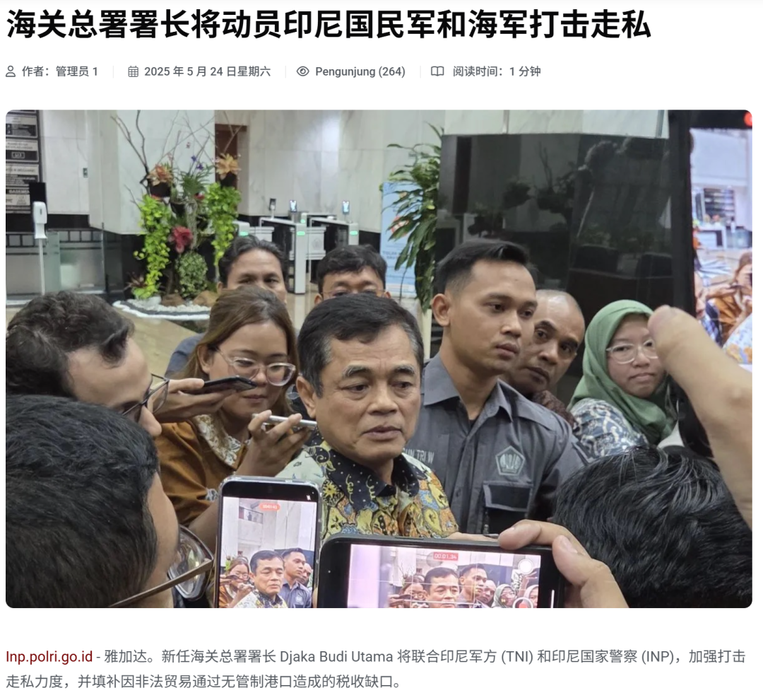 尤其今年印尼海关“大换血”,新任署长奉行军事化管理,明确宣布将联合印尼国民军(TNI)、国家警察部队(INP)常态化打击走私行为,填补非法贸易通过无管制港口流失的税收缺口。