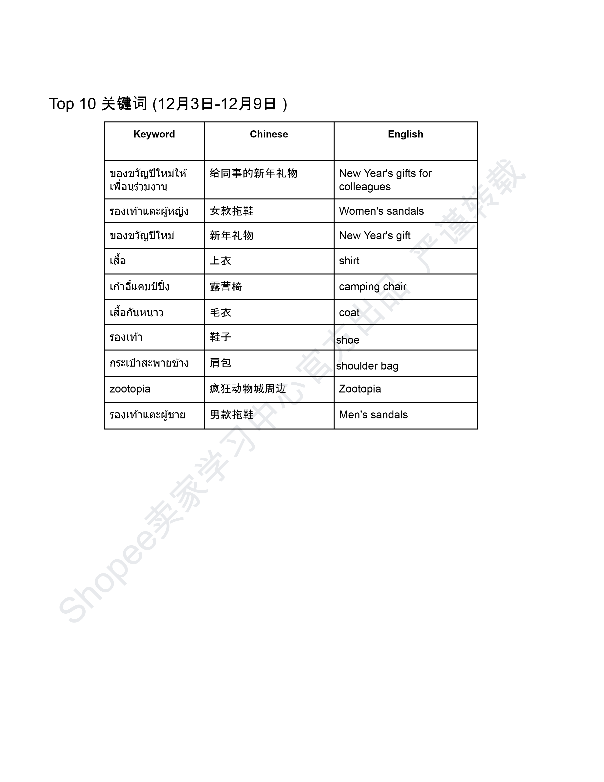 【Shopee市场周报】虾皮泰国站2025年12月第3周市场周报