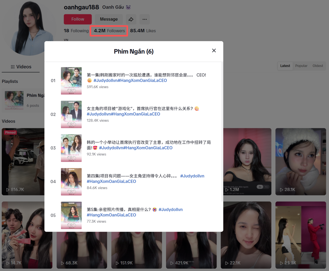 剧中女主角是越南拥有 420 万粉丝的头部红人,首支视频上线首日便斩获 49 万自然播放量。爱情与职场的内容题材,不仅高度契合橘朵面向年轻女性消费者的核心定位,又通过聚焦职场压力与情感生活的议题,精准戳中目标受众的情感共鸣点。